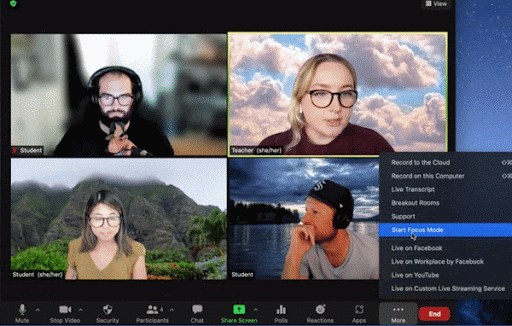 Η νέα λειτουργία σχεδιάστηκε με κύριο γνώμονα την εκπαίδευση, βοηθώντας του συμμετέχοντες να εστιάζουν ευκολότερα, σε ότι προβάλει ο εκπαιδευτικός. Πιο συγκεκριμένα, οι διοργανωτές του Meeting, μπορούν πλέον να επιλέξουν να προβάλλεται σε κάθε συμμετέχοντα μόνο ο εαυτός τους, ο εισηγητής και το περιεχόμενο που διαμοιράζεται, απενεργοποιώντας την δυνατότητα προβολής των υπόλοιπων συμμετεχόντων. Την ίδια στιγμή, ο διοργανωτής εξακολουθεί να βλέπει όλους τους συμμετέχοντες ταυτόχρονα, μέσα από το gallery view, του Zoom Meeting.