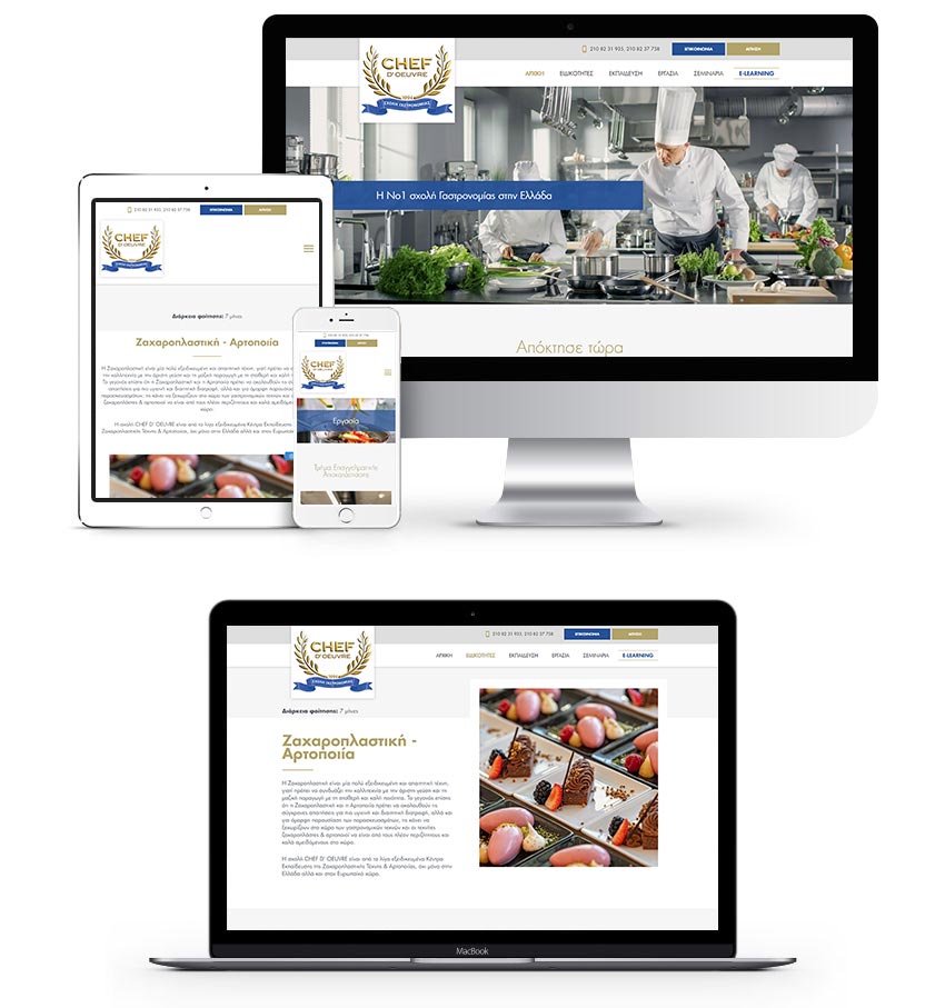 Το τμήμα υπηρεσιών WEB & MOBILE DEVELOPMENT της RDC Informatics, ολοκλήρωσε με επιτυχία τον σχεδιασμό και την ανάπτυξη νέου δικτυακού τόπου της Σχολής Μαγειρικής Chef d’ Oeuvre, το οποίο λειτουργεί στην ηλεκτρονική διεύθυνση www.chefdoeuvre.gr.