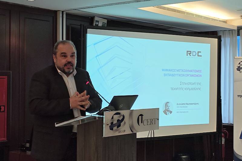 Η RDC Informatics παρουσίασε καινοτόμες εφαρμογές με τεχνητή νοημοσύνη (ΤΝ) και την αξία που προσφέρουν σήμερα για τον ψηφιακό μετασχηματισμό εκπαιδευτικών οργανισμών, στα πλαίσια της ημερίδας που διοργάνωσε η UCERT και ο όμιλος εκπαίδευσης και πιστοποίησης D Group, στις 28 Νοεμβρίου 2025 στο ξενοδοχείο TITANIA.