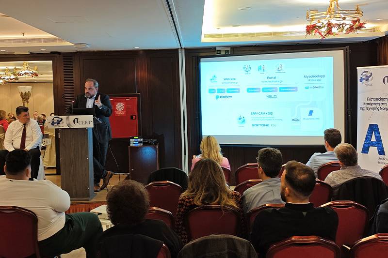 Πιο συγκεκριμένα, ο κ. Διονύσης Κουτσαντώνης, πρόεδρος και διευθυντής του τμήματος Έρευνας & Ανάπτυξης της RDC Informatics Α.Ε., παρουσίασε τον τρόπο με τον οποίο οι τεχνητή νοημοσύνη θα επηρεάσει τον τρόπο των σημερινών εφαρμογών λογισμικού που χρησιμοποιούνται από εκπαιδευτικούς οργανισμούς, συμπεριλαμβανομένων των συστημάτων μηχανογράφησης (ERP & CRM) και των πλατφορμών εξ’ αποστάσεως εκπαίδευσης (Learning Portals). Η πρακτική αξία των εφαρμογών με τεχνητή νοημοσύνη, αναλύθηκε με παραδείγματα και καλές πρακτικές, που συντελούν στην επιτάχυνση και απλοποίηση εκτέλεσης πολύπλοκων διεργασιών, στη λειτουργία ενός εκπαιδευτικού οργανισμού.